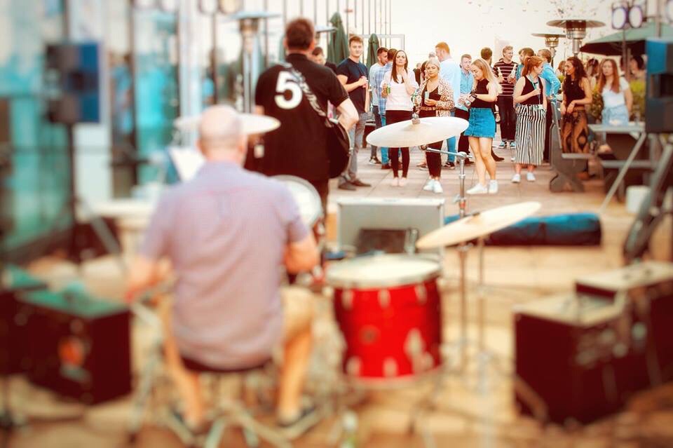 Great gig on Friday, playing for the RSM Staff in Manchester on the 9th floor roof terrace overlooking Spinningfields… lovely sunset, perfect backdrop..🎸🕶